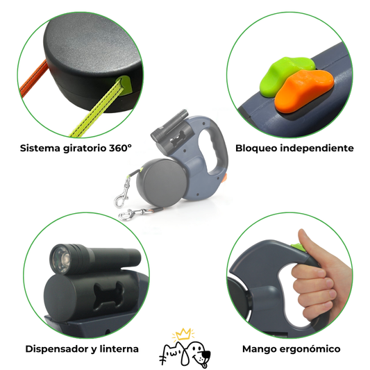 🐾 DuoWalk Pro – Correa Doble Antienredos Retráctil 🐾